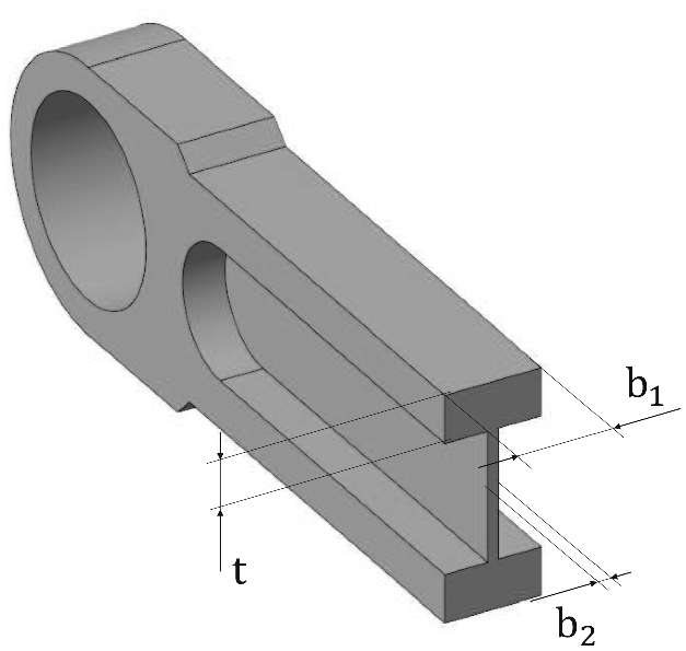 where \(b_1\), \(b_2\) and t are the selected dimensional parameters, as in Fig. 11, whereas \(\left| \delta _{i}\right| \) is the module of the nodal displacement registered at the i-th node, being m the total number of nodes in the FEA model. The problem converged after a limited number of iterations (less than 50) and took approximately 1 hour to complete using a personal computer with an Intel(R) Core(TM) CPU @ 2.5 GHz and 16 GB RAM. The optimal parameter set is \(b_1=7\) mm, \(b_2=0\) mm and \(t=7.75\) mm. The final rod, whose behavior is reported in Fig. 12, provides a mass reduction of \(66.5\%\) with respect of the initial sub-optimal configuration, i.e. from 322 g to 108 g, with obvious benefits in terms of cost reduction and actuation effort. At last, the maximum nodal displacement is 0.1 mm, whereas the maximum Von Mises stress arising in the component is 8 MPa (\(S_f=50\)).