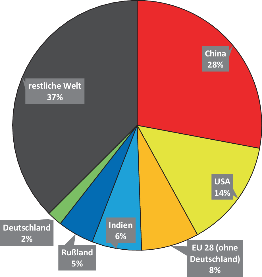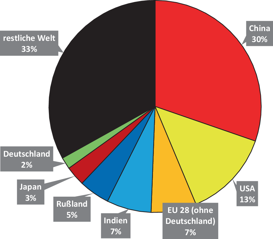 Länderanteile an globalen THG-Emissionen 2017. (Quelle: eigene Darstellung nach Daten aus BMU 2020, S. 12)