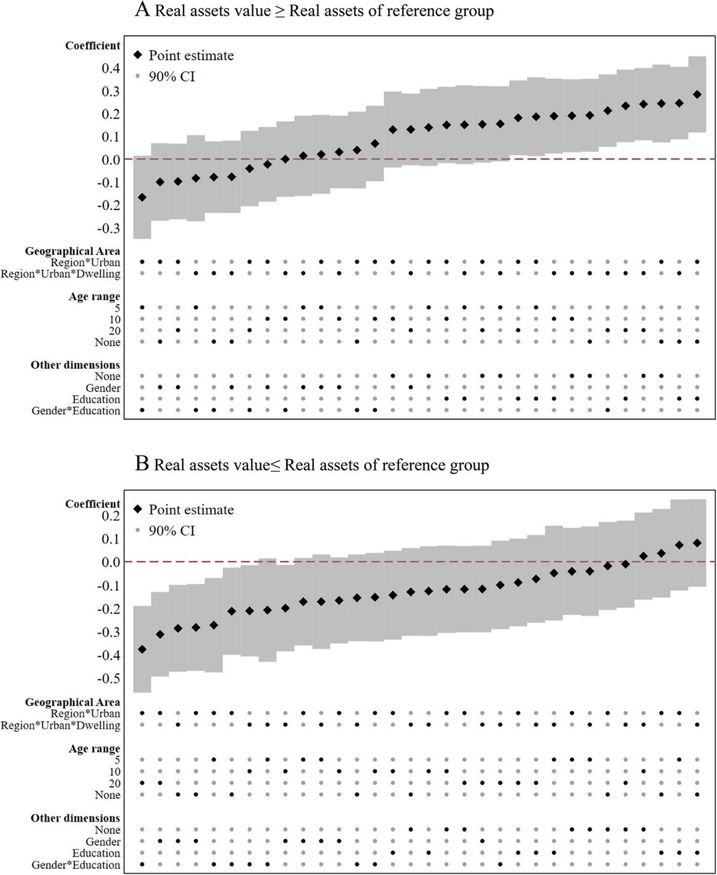 Specification curves for relative effects of real assets using different reference groups. Source: HFCS 2017 – National Bank of Slovakia