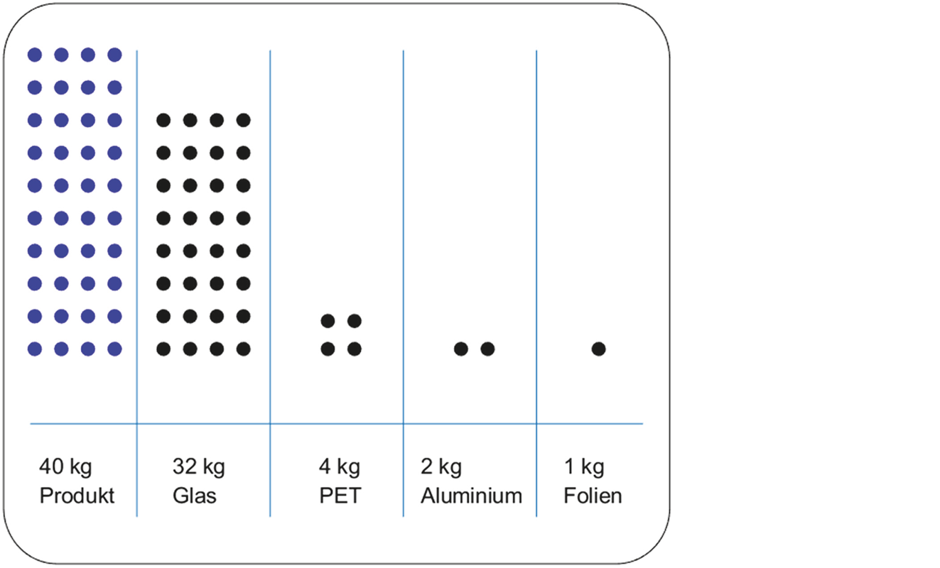 Es konnte anhand von Lebenszyklusanalysen gängiger Lebensmittel gezeigt werden, dass die Verpackung nur etwa 5 bis 10 % der gesamten Umweltbelastung ausmacht, die durch das Produkt verursacht wird (Silvenius et al. 2011; Büsser et al. 2007, Büsser und Jungbluth 2009, 2011).