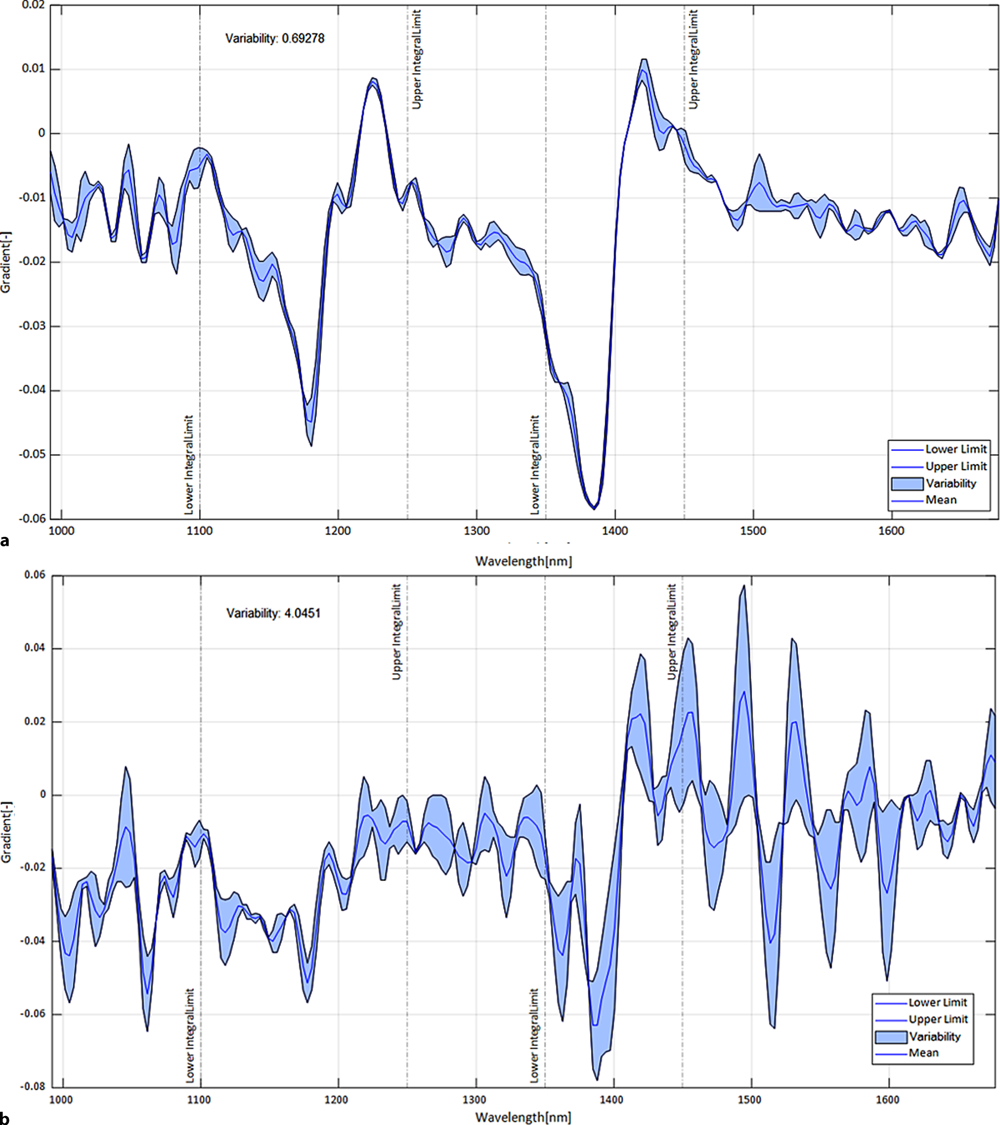 Erste Ergebnisse zeigen eine verbesserte Spektralgüte durch kostengünstige Adaptionen an einem Stand-der-Technik-Sortiersystem. Die Spektralgüte, welche durch eine herkömmliche kontaktlose Messung von dünnschichtigen Folienverpackungen in Reflektion erreicht werden kann, ist aufgrund der geringen Materialstärke nicht ausreichend für eine Klassifizierung der Materialtype. Effekte wie sinusförmige Spektralüberlagerungen und eine unzureichende Reflektion der Nahinfrarotstrahlung führen zu unbrauchbaren Spektren für die Datenanalyse. Abb. 5 zeigt den Vergleich eines Spektrums desselben Materials vor und nach der Adaption des Sortieraggregats.