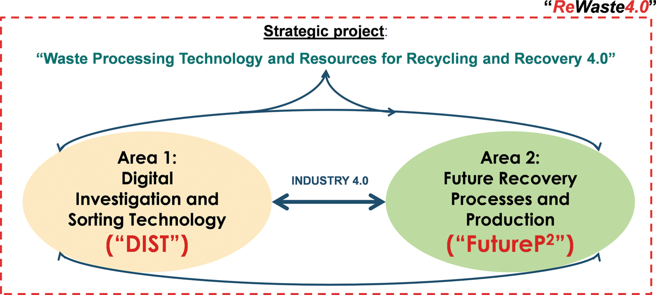 ReWaste F – Recycling and Recovery of Waste for Future – ist die konsequente, qualitativ hochwertige F&E-Fortsetzung für den Zeitraum 2021 bis 2025 – aufbauend auf dem umfangreichen Know-how und den weitreichenden Ergebnissen von ReWaste4.0, unter Berücksichtigung aktueller und zukünftiger Abfallströme (d. h. nicht gefährliche gemischte Abfälle), Technologie- (Maschinen, Sensoren, Kameras) und Digitalisierungsentwicklungen (Datenanalytik, Simulation sowie intelligente Material-Maschine-Maschine-Digitalverknüpfung).