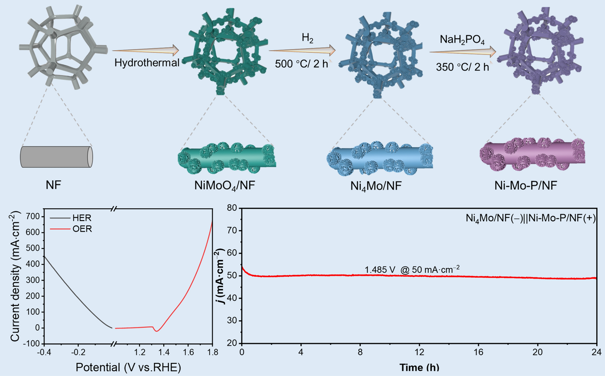 Self-supporting sea urchin-like Ni-Mo nano-materials as asymmetric electrodes for overall water splitting