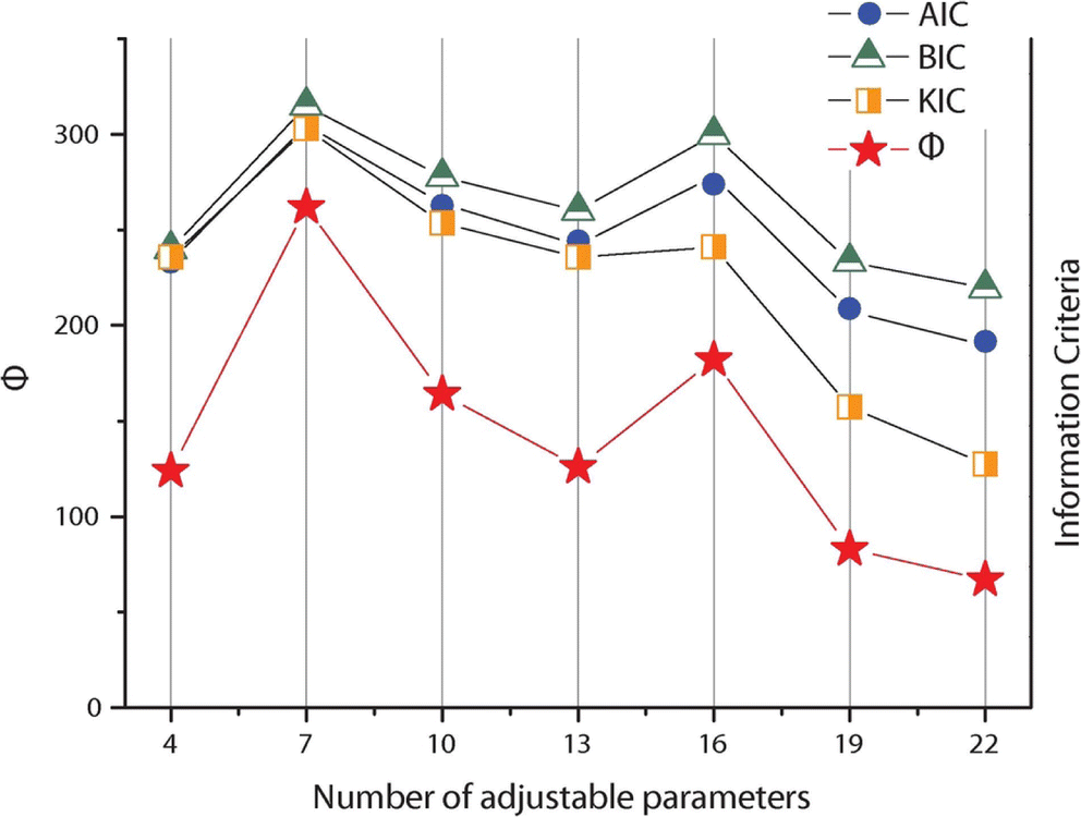 This principle attests that as the number of parameters increases in a model, the calibration improves, but not the model reliability because the model starts to reproduce not only the behaviour of the physical system, but also the noise associated with the data. Therefore, there should be a balance between the quantity of data and the number of parameters that can be calibrated, as expressed by the information criteria.