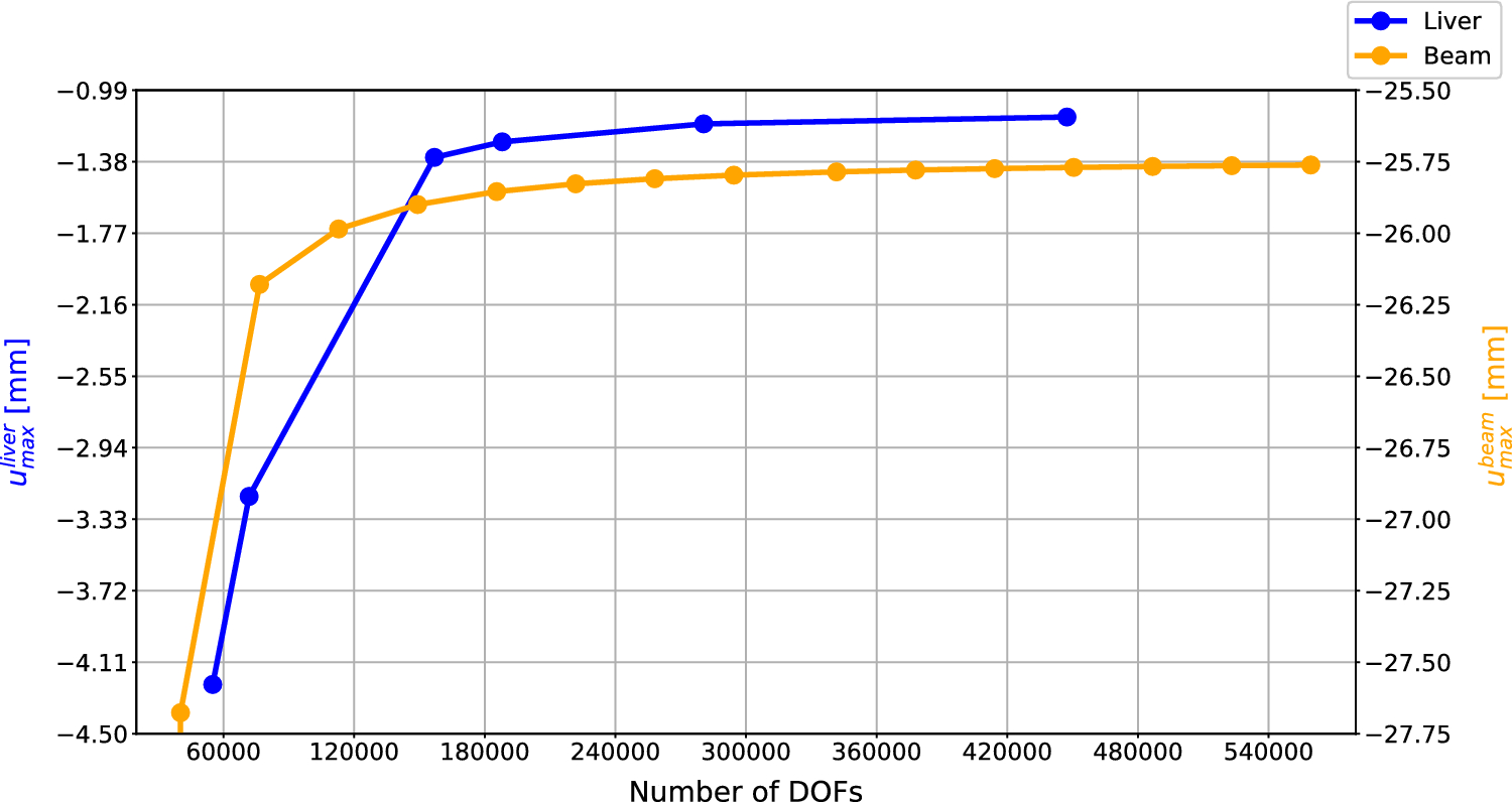 The complexity of the simulation: In addition to the complexity of the material model, the simulation setup itself can be problematic. For instance, the material parameters are patient-specific and require data-driven or inference methods [37, 38]. The simulations can also (partially) involve unknown boundary conditions [39], contact with other organs [40, 41], or surgical tools [42, 43]. The problem can also require multi-physics models [such as Fluid–Structure Interactions (FSI) [44, 45]] or incompressibility [46, 47], where classical displacement-based finite elements are prone to locking.