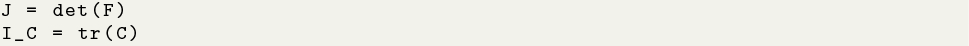 in addition to previously defining the corresponding kinematics variables \(J = \text {det}(\varvec{F})\) and \(I_{C} = \text {tr}(\varvec{C})\).