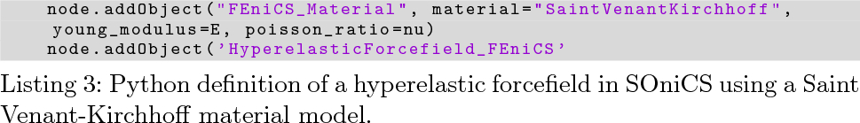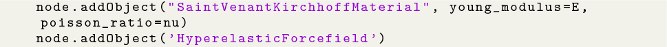 Listing 2: Python definition of a hyperealstic forcefield in SOFA using a Saint Venant-Kirchhoff material model.