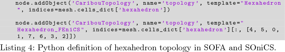 Listing 4: Python definition of hexahedron topology in SOFA and SOniCS.
