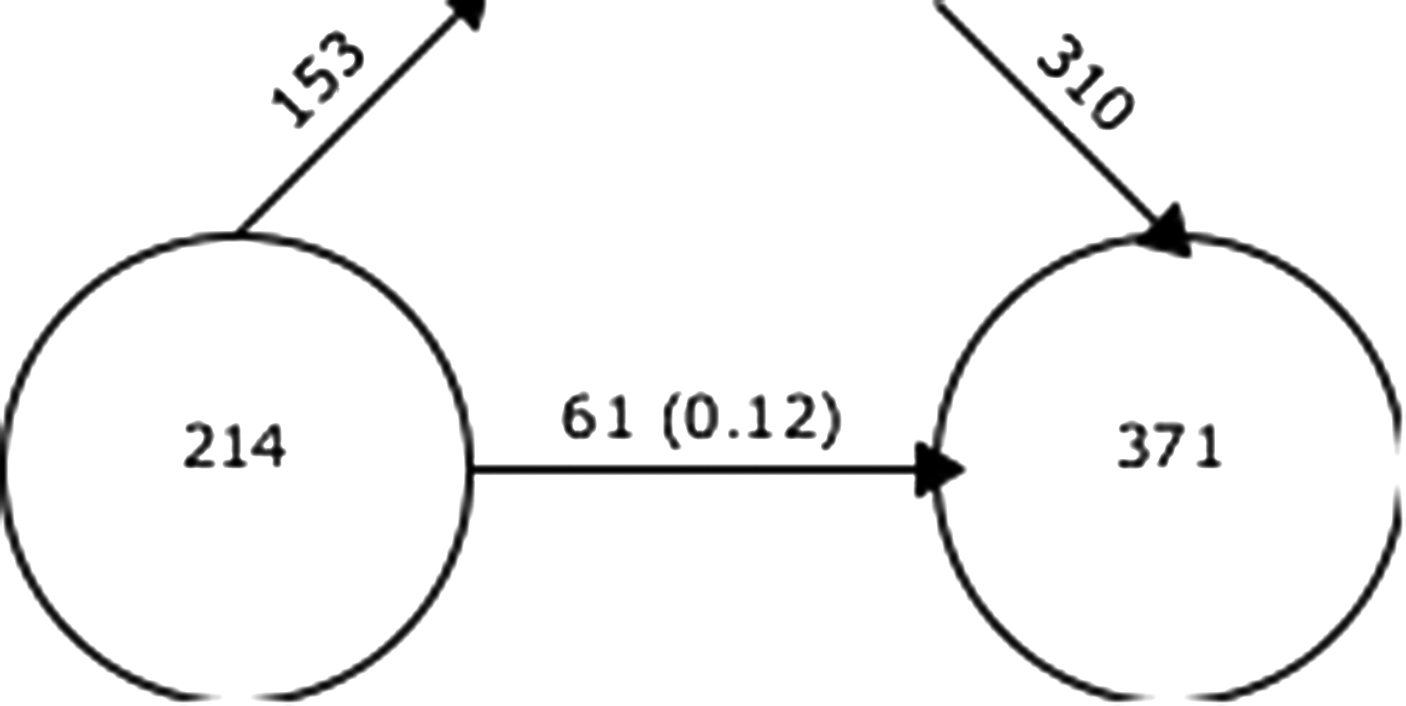 On the other hand, to analyse the evolution of the keywords, we took the overlap map, which measures the number of keywords shared between successive sub-periods, and we observed the evolution of the keywords over the two periods of study in Fig. 7, where each circle represents a period. The number of keywords in each period is represented inside the circle. The arrows linking the different periods (the horizontal ones) represent the number of keywords shared between them. The top incoming arrows represent the number of new keywords that emerged in a particular period, and the top outgoing arrows represent the keywords that disappeared after a given period and were not included in the next period.