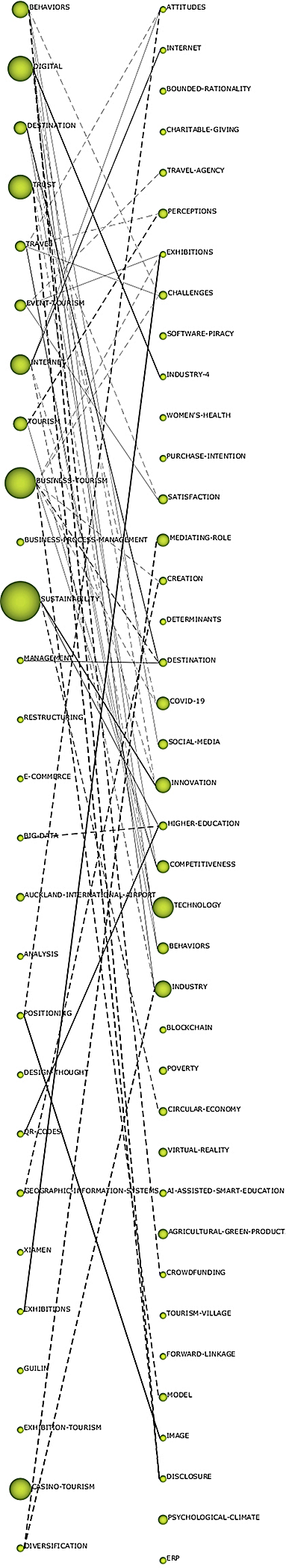 “Business tourism” was relevant as it was highly cited during the second period to topics such as “destination”, “creation” and “COVID-19”; however, this relationship is represented with dashed lines as it shares elements other than the subject title.
