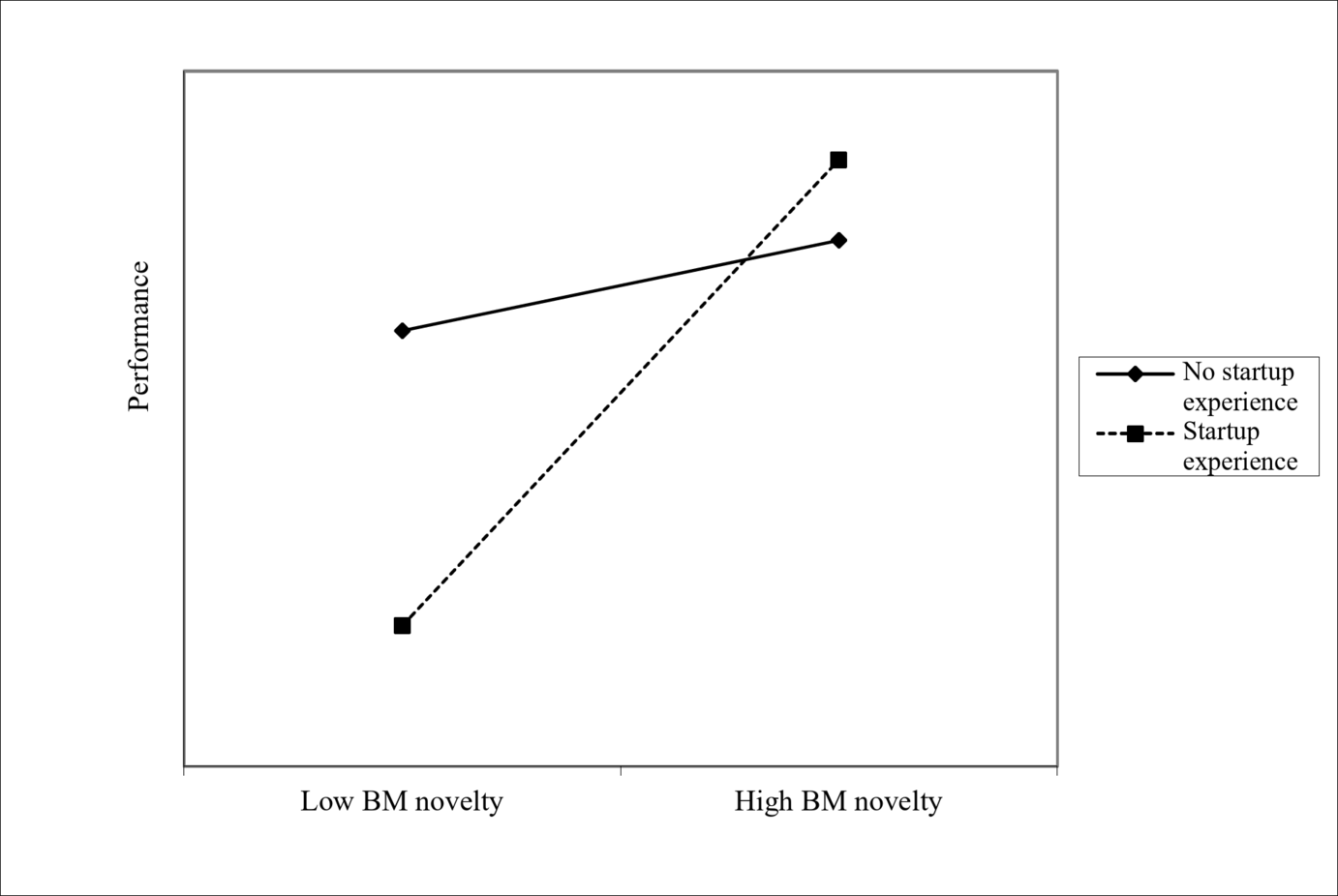 Novel business models are designed in order to secure the economic value of entrepreneurial opportunities (George & Bock, 2011). Previous start-up experience allows entrepreneurs to integrate, build and reconfigure a firm’s resources effectively so as to capture the economic value of those novel business models (Guo et al., 2013; Zott & Amit, 2010). Whereas efficiency-centred business models leverage efficiency as the underlying design theme (Zott & Amit, 2007), the combination of a unique novel business model combined with previous start-up experience might be more beneficial to performance. Individuals who have run a start-up in the past will have developed cognitive frameworks reflecting such experience (Baron & Ensley, 2006). This set of experience might be especially needed in the case of a start-up with a novel yet unknown business model. Experienced entrepreneurs are able to efficiently manage a business model and capture the economic rents. Start-up experience can help in more effectively integrating resources within the value network, create processes to leverage those bundled resources, and bond the focal firm with its participants in novel ways (Guo et al., 2013). In contrast, novice entrepreneurs might more strongly emphasize attributes less directly related to business processes such as, for example, the novelty or uniqueness of a business model, potentially leading to inefficiencies.