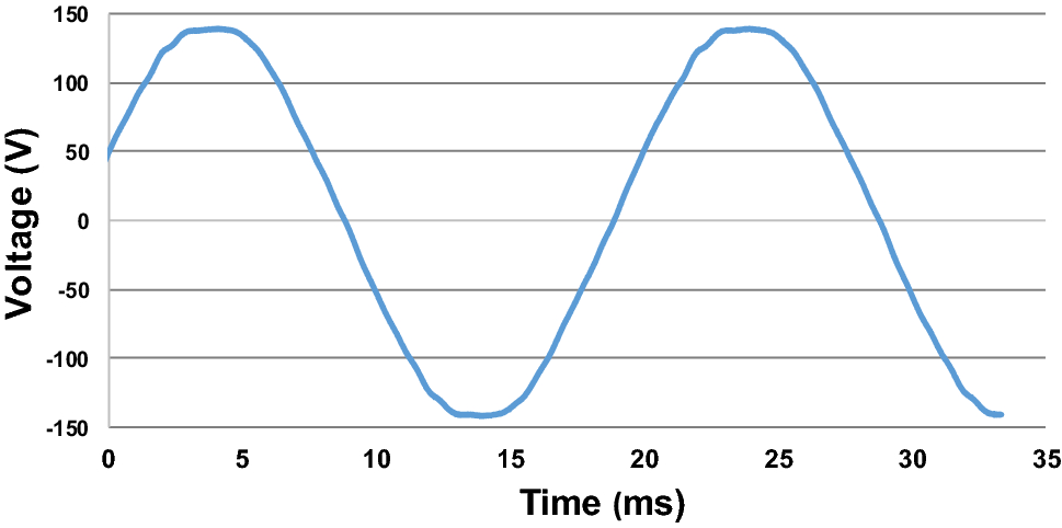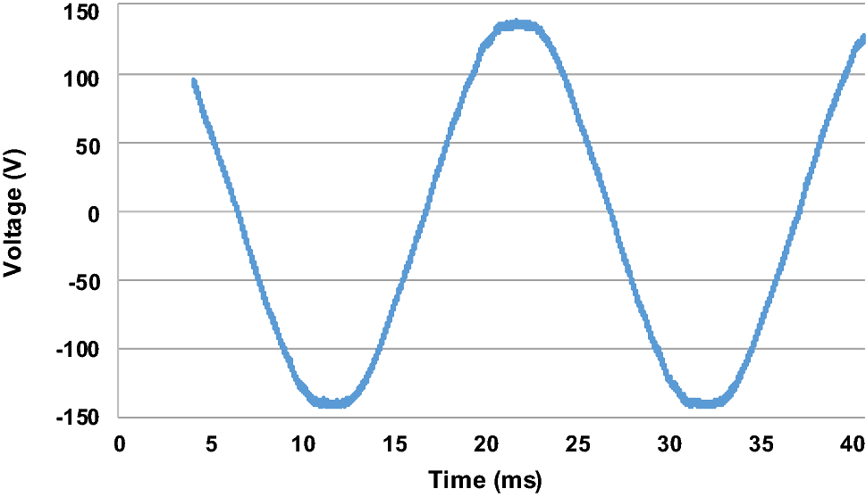 Sinusoidal voltage, with RMS 100 V and 140 V magnitude applied to the divider. It correctly measures and reproduces the generated waveform
