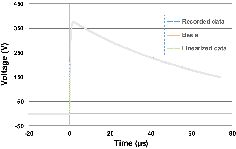The oscillations in the wave front are probably due to the connection of the divider at the test set-up without a damper. In a full-scale divider, the study of the damper is mandatory but at this preliminary stage, the improvement of a damped connection has not been investigated due to the small size of the divider (and of its low resistance value) in comparison with the test set-up. It should be necessary putting a damper with a resistance value higher than that of the divider itself changing the divider ratio so impairing the measurement. In addition, for the purpose of this work, a greater bandwidth does not change the results of the measurements and the preliminary evaluations on the composite waveforms. A better bandwidth will be achieved for the full-scale divider.