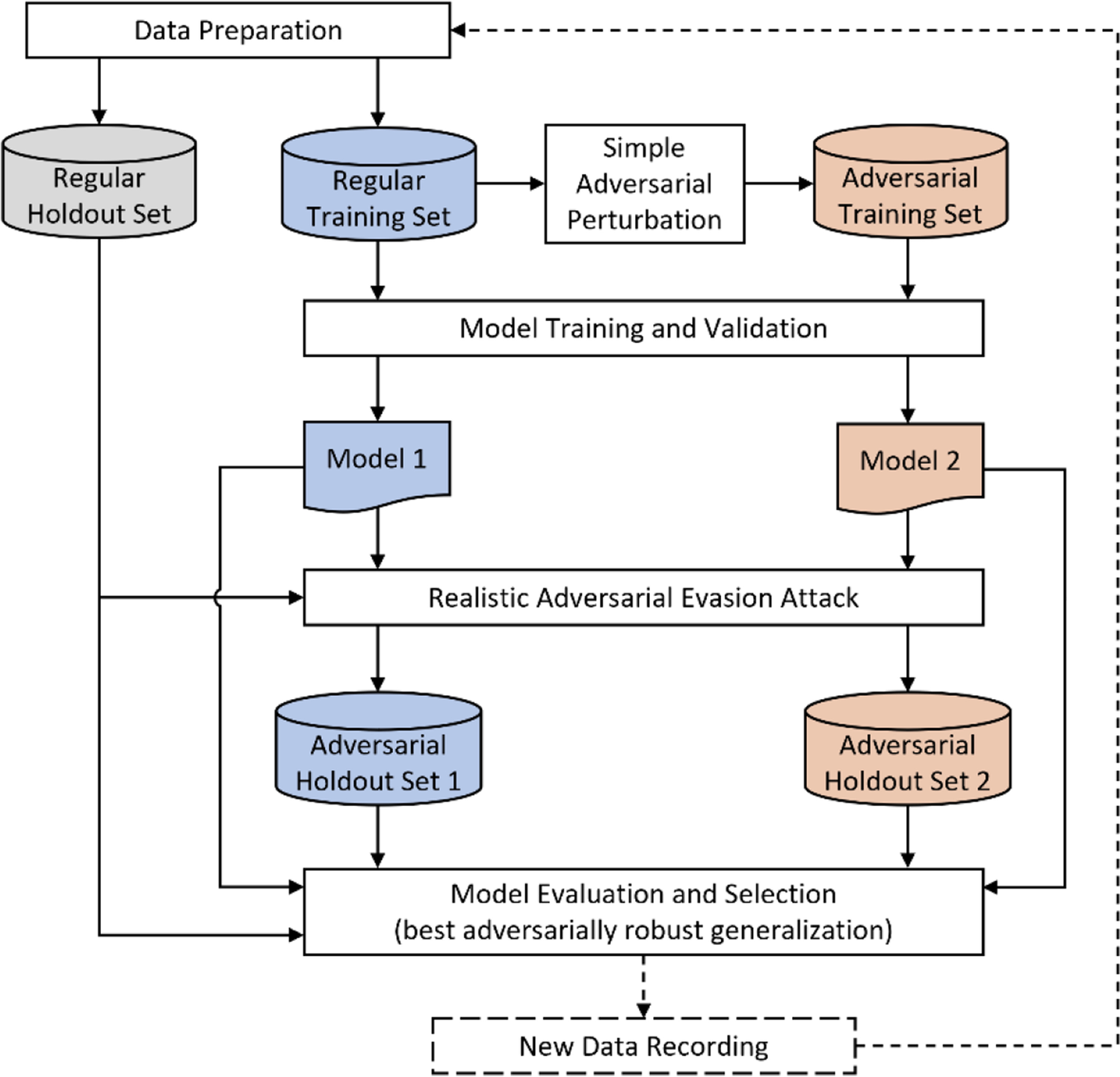From the comparison performed in the last step, the model with the most adversarially robust generalization can be selected for deployment. Posteriorly, if new data is recorded, this methodology can be replicated to anticipate possible threats and use that knowledge to improve the defense strategy (see Fig. 1).