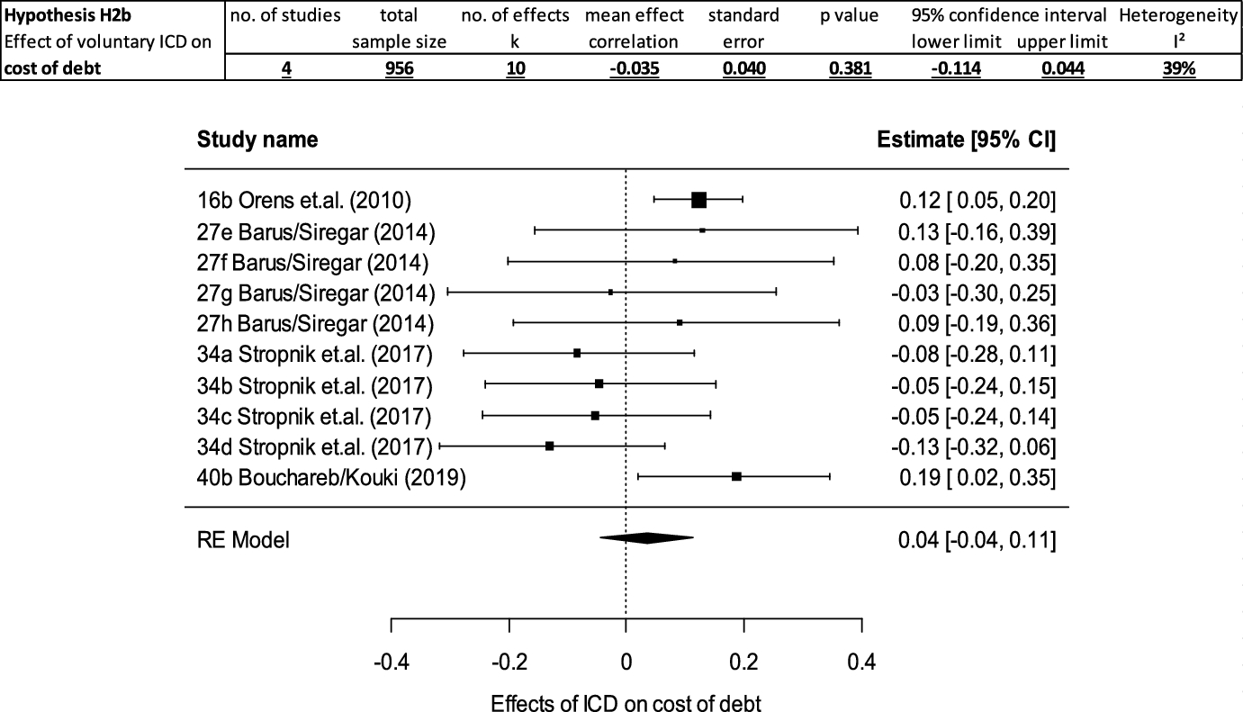 There is a negative association between voluntary ICD and disclosing firms’ cost of capital differentiated into cost of equity capital (H2a) and cost of debt (H2b).
