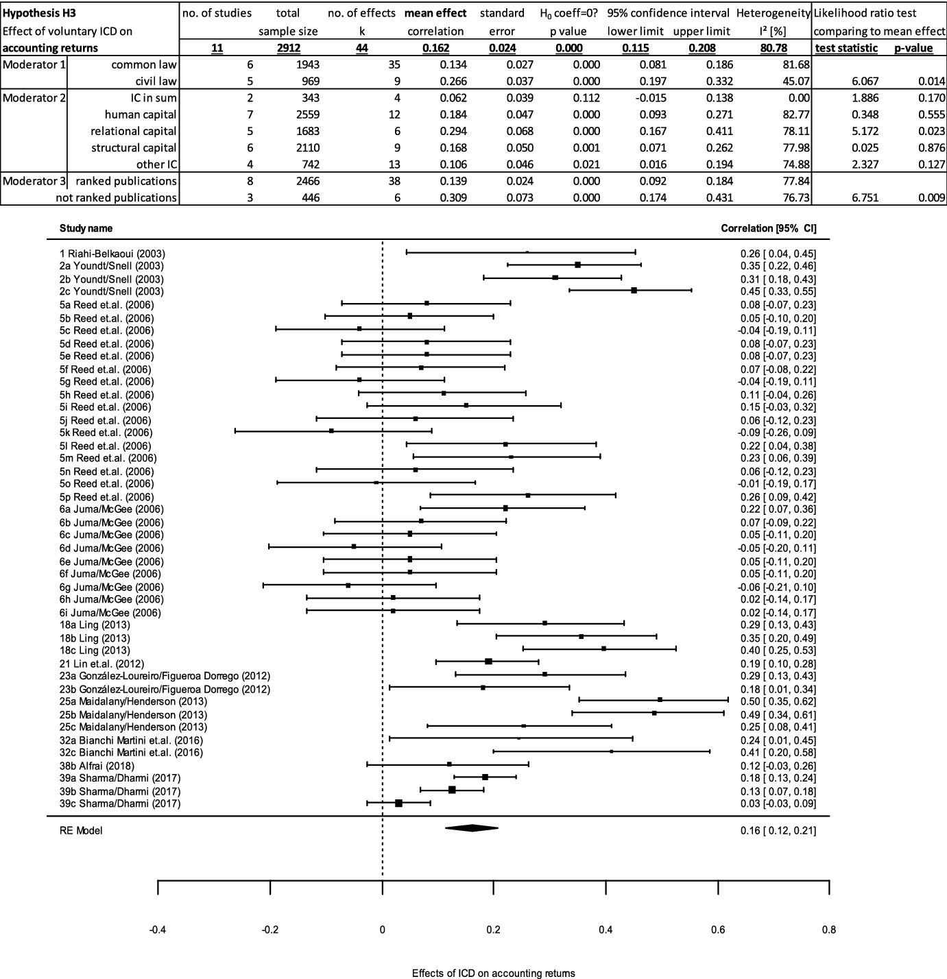 In this paper, a meta-analysis of 40 studies is conducted. We integrate the correlation coefficients between voluntary ICD and various effects of value relevance and conduct subgroup analyses and meta-regressions based on various moderating variables such as legal origin characteristics.