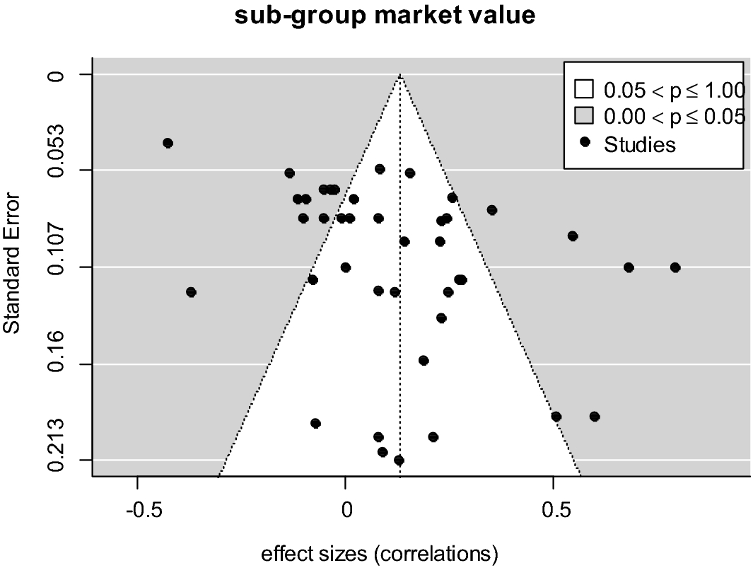 In the end, a final group of 40 papers analysing 122 measures of value relevance of voluntary ICD was extracted for the meta-analysis (see Appendix 1). Compared to other meta-analyses in accounting (Khlif and Souissi 2010 analysed 16 studies; Souissi and Khlif 2012 investigated 22 studies; Eddine et al. 2015 investigated 19 studies), our meta-analysis appears to be quite comprehensive. In general, the unit of analysis is the individual study. However, the majority of studies analysed multiple effects on the value relevance of voluntary ICD.
