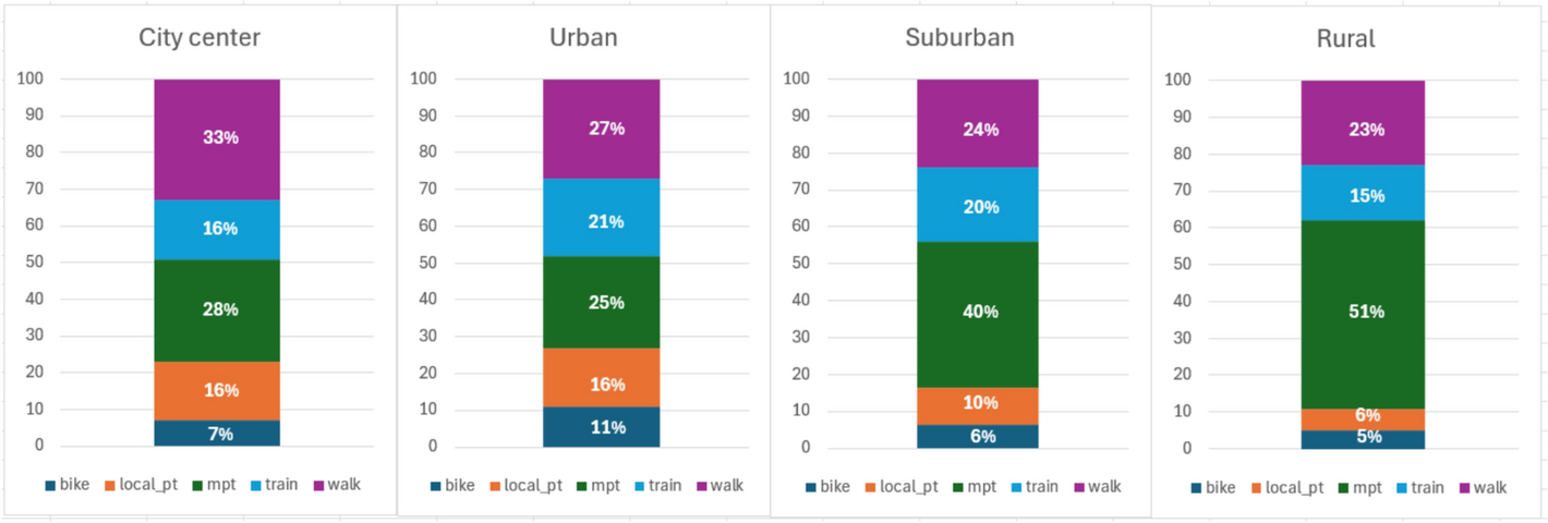 Another influential body of work has explored the intersection of spatial context and mobility behavior. Studies like those by Chen et al. (2008), Harbering and Schlüter (2020), and Schlüter et al. (2021) underscore the importance of integrating environmental factors—such as urban density, access to public transport, and proximity to key destinations—into models of mode choice. These studies argue that individual travel behavior cannot be understood in isolation from its spatial context, suggesting that a more nuanced analysis of socio-economic factors requires an understanding of both the built environment and the individual’s personal circumstances. This aligns with the spatial economics approach, which has been applied in transportation studies to examine how place-based factors interact with socio-economic variables to shape mobility decisions (see Banister 2008, and Graham and Marvin 2001).